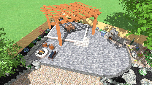 - Hard-Scape: This focuses on creating permanent structures, included but not limited to: Paver and natural stone patios and walkways, retaining walls, fire pits, outdoor structures such as kitchens, water features such as ponds and riverbeds, irrigation systems, outdoor lighting systems and artificial turf installation. The options for colors, layouts and specifications never end!